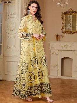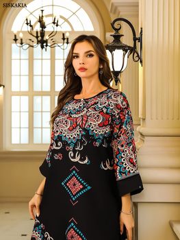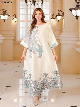 Siskakia Ramadan Muslim Women’s Embroidered Loose abaya Dresses For Women Gala Morocco Dubai Elegant Casual Kaftan