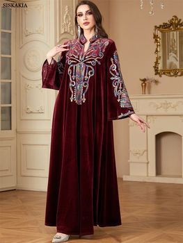 Siskakia Ramadan Muslim Women’s Sequins Patchwork Abayas Dubai Gold Velvet Dresses Moroccan Elegant Casual Kebaya