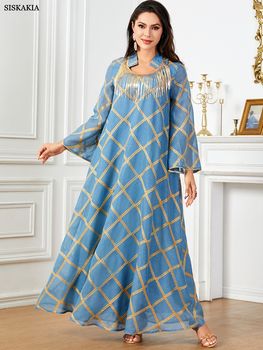 Siskakia Ramadan Dubai Embroidery Maxi Dresses Sequins Patchwork Abaya Muslim Tassel Caftan Marocain Femme