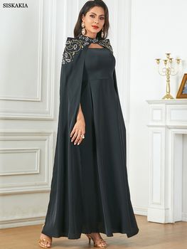 Siskakia Dubai Fashion Solid Evening Party Gown Turkish Women Long Dresses With Cloak Moroccan Kaftan Saudi Clothing 2024 New