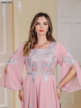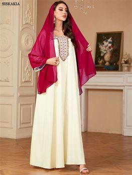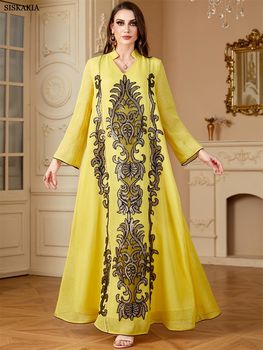 Siskakia Muslim Dubai Woman’s Abayas Embroideried Elegant Fashion Casual Loose Long Dress Moroccan Robe For Femme Musulmane 2024