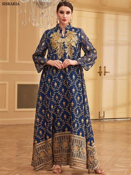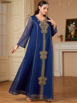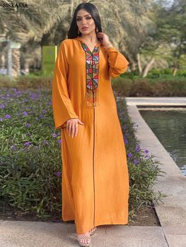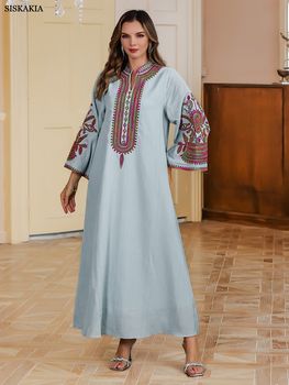 Siskakia Moroccan African Women Embroidery Appliques Long Dresses Turkish Elegant Casual Daily Homewear Clothing Saudi Abayas