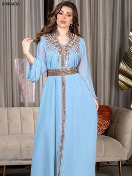 Siskakia Ramadan Dubai Patchwork Long Abayas Sequins Panel Kebaya Morocco Dresses For Women Gala Stylish Elegant Clothing