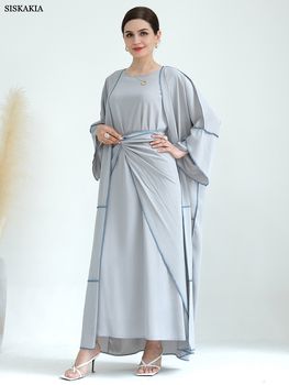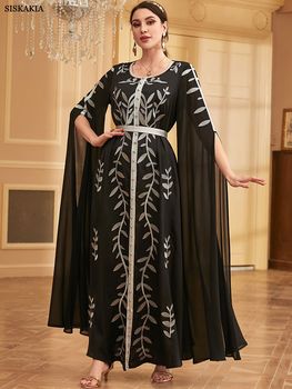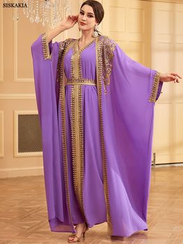 Siskakia Ramadan Sequins Dubai Abayas Arab Tunics Batwing Sleeve Dresses For Women Gala Two pieces Moroccan Elegant Kebaya