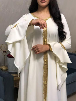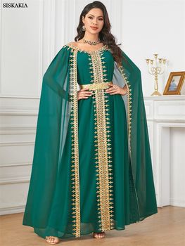 Siskakia Fashion Elegant Solid Appliques Party Long Dresses Moroccan Kaftan Islam Clothing Turkish African Abayas Super Sleeve