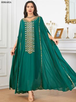 Siskakia Abaya Dubai Luxury Sequins Long Dress For Muslim Woman Turkey Islam Moroccan Kaftan Muslim Fashion Elegant Party Dress