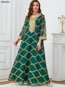 Siskakia Fashion Muslim Moroccan Caftan Dubai Abaya Dress Chic Sequins Embroider Notched Stand Collar Evening Party Robe Women