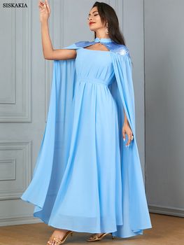 Siskakia Sleeveless Dress Solid Color Belted Kaftan With Cape Women’s Elegant Dresses Fashion Elegant Abayas For Women 2024