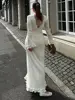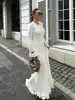 Women Elegant Solid Lace Up Pleated Hem Knit Maxi Dress Chic Full Sleeve Round Neck Slim Long Dresses Lady New Highstreet Robes