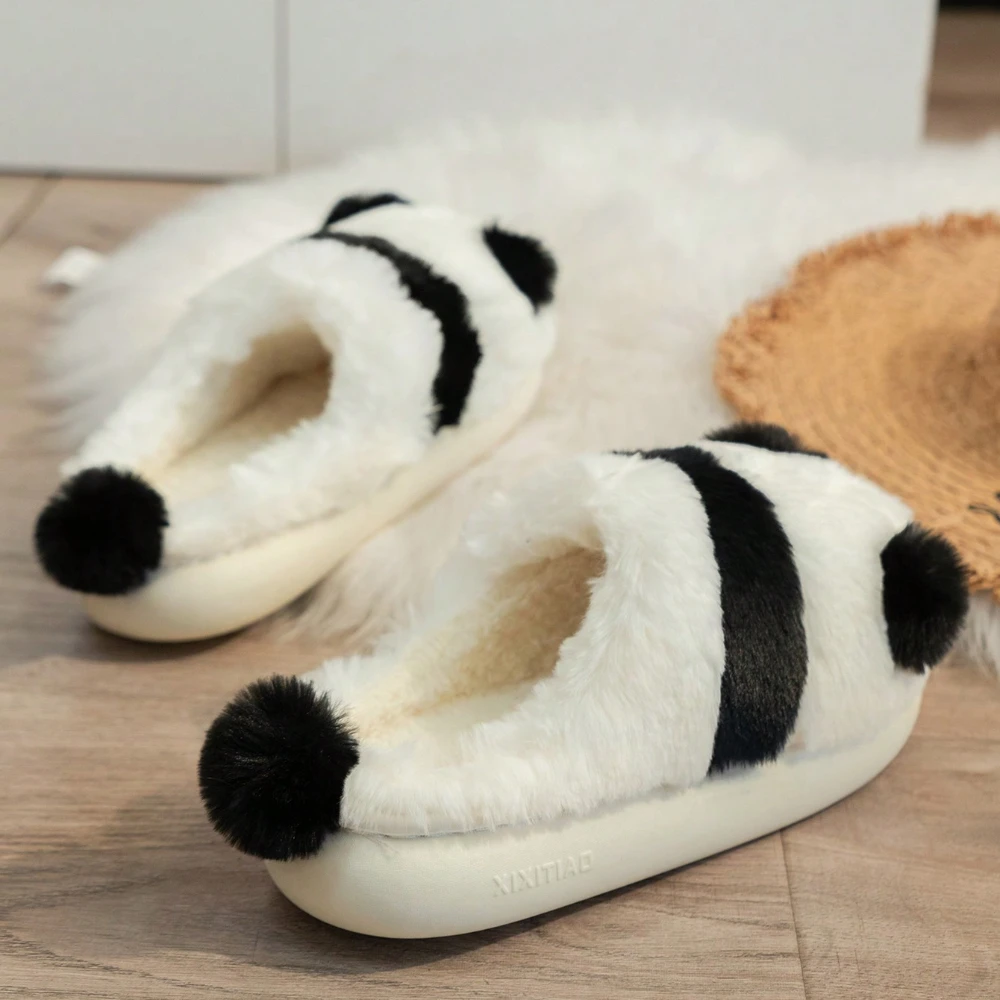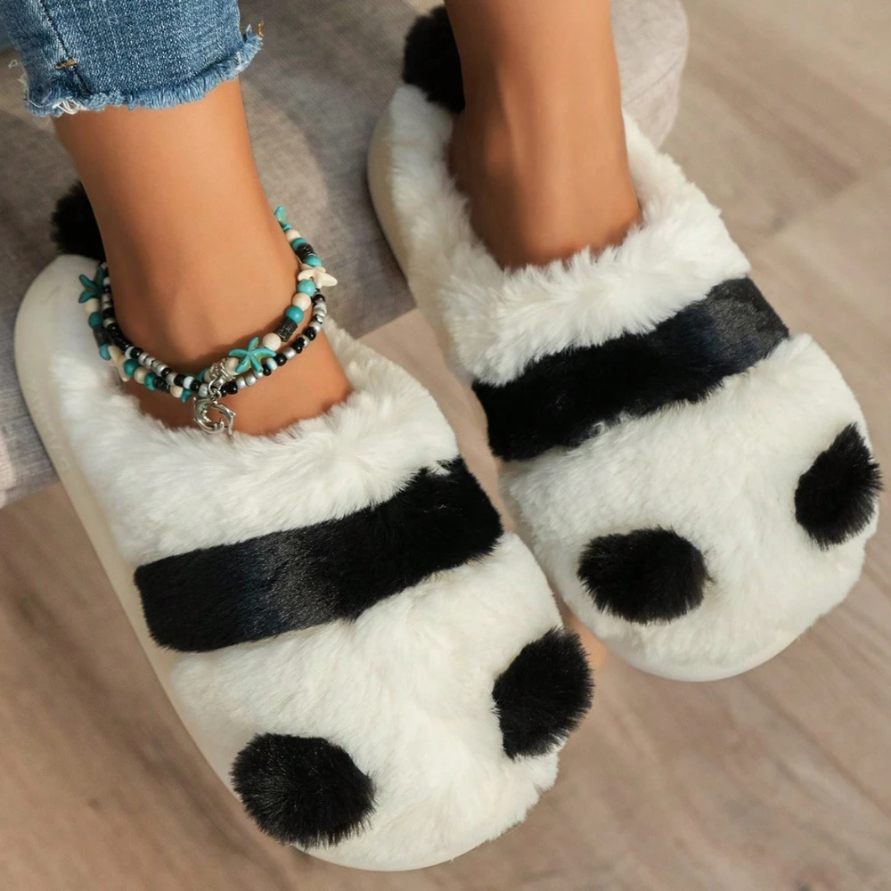 Women’s Autumn Winter Indoor Cute Cartoon Panda Plush Anti-slip Fashionable Casual Warm Slippers Home Shoes