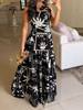Women’s Fashion Print Sling Long Dress Summer New Elegant Casual Office Holiday Beach Party Dresses For Women Robe Femmes