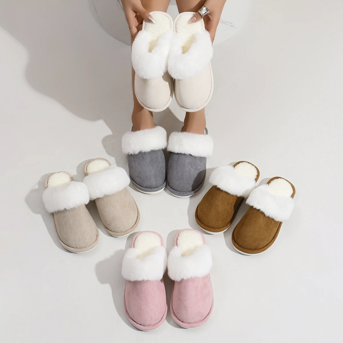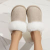 Women’s solid color fluffy home warm slippers, soft soled plush lined slippers, anti slip silent shoes