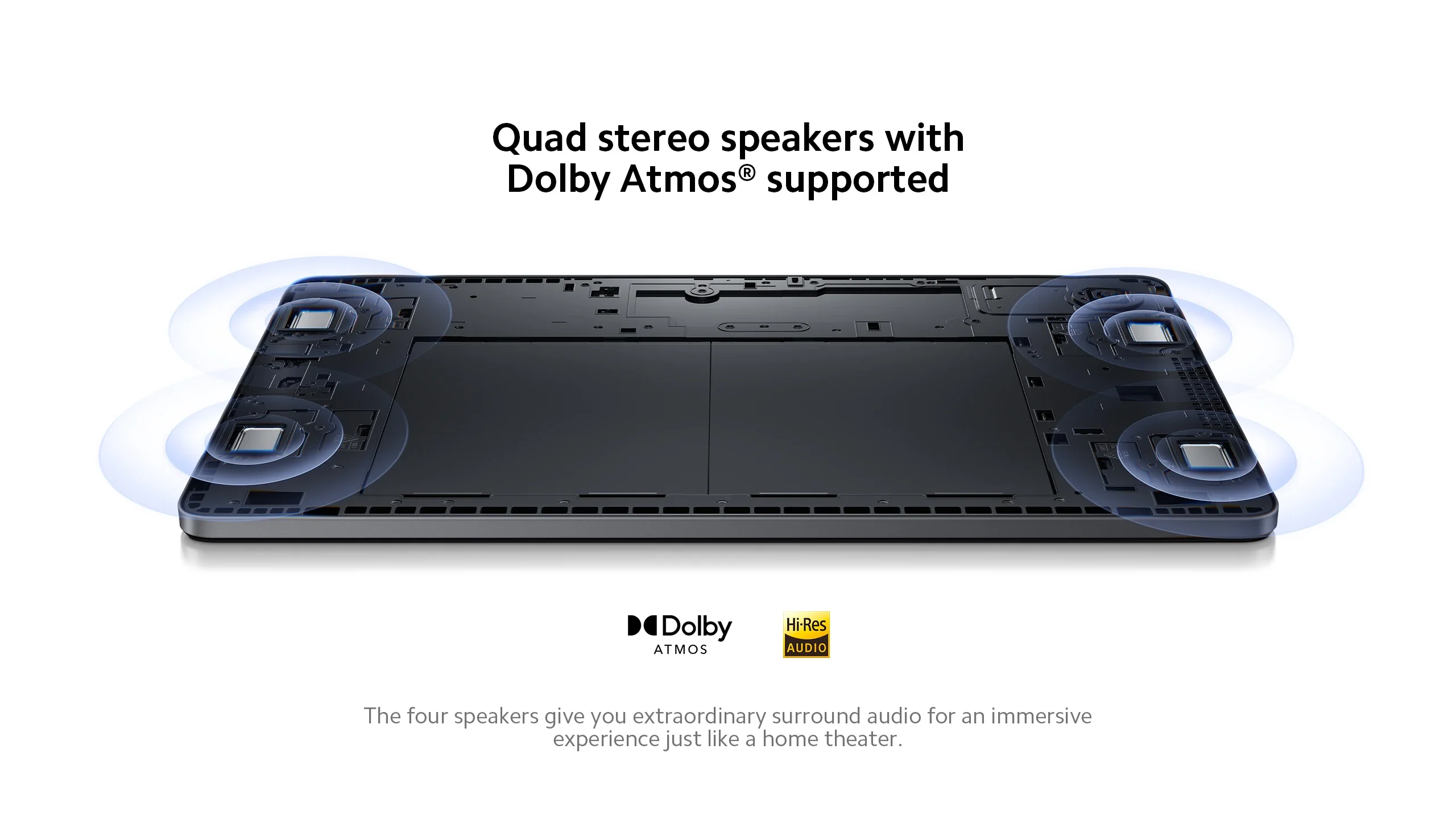 Quad speakers with Dolby Atmos® |Stylish aluminum alloy unibody design