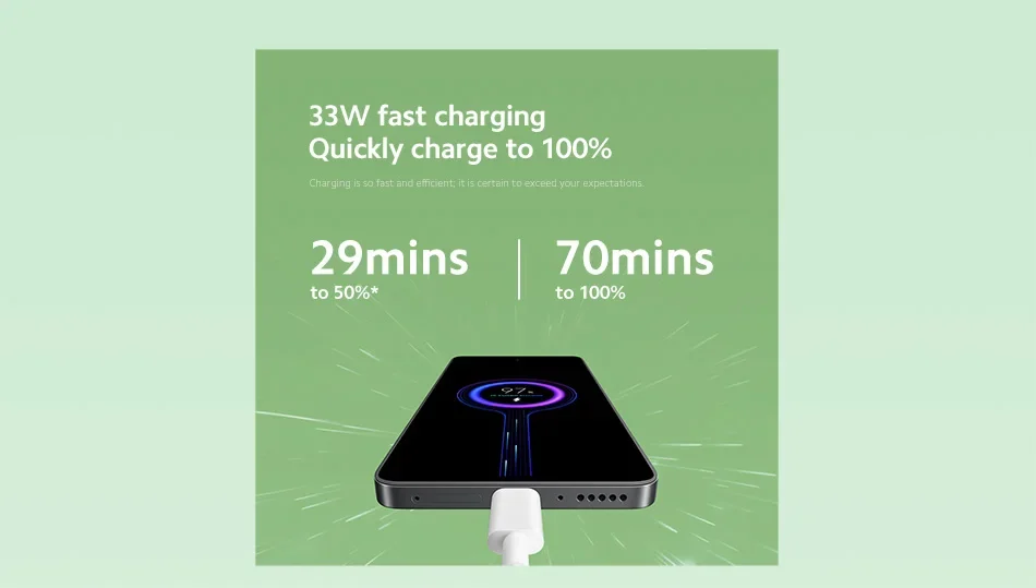 >Battery——-5000mAh (typ) battery,33W fast charging