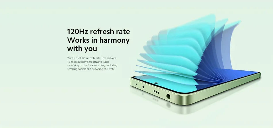 With a 120Hz* refresh rate, Redmi Note 13 feels buttery smooth and super satisfying to use for everything, including scrolling socials and browsing the web.