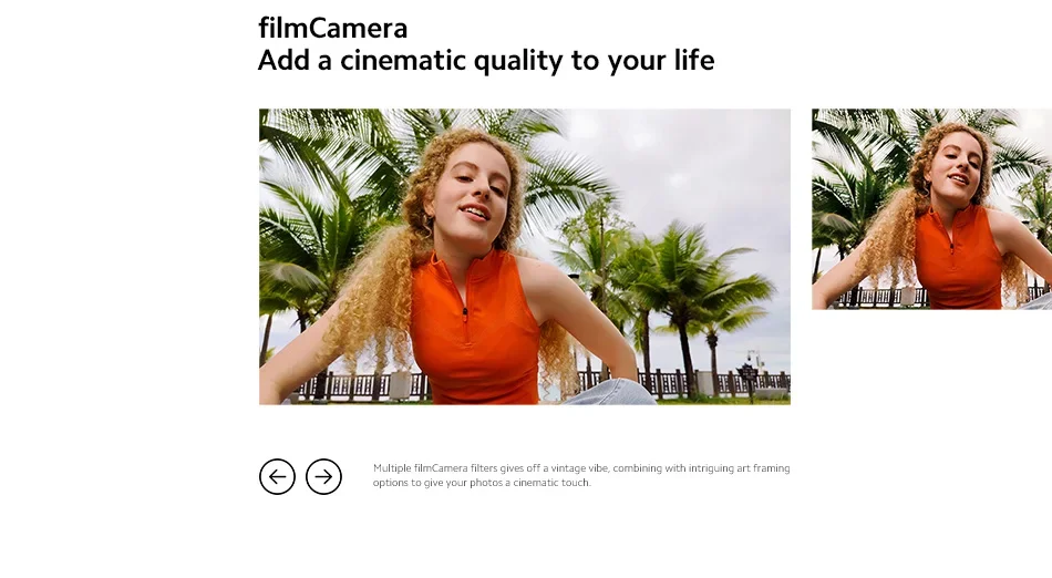 Multiple filmCamera filters gives off a vintage vibe, combining with intriguing art framing options to give your photos a cinematic touch.