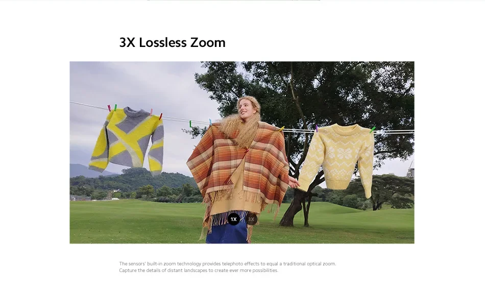 The sensors’ built-in zoom technology provides telephoto effects to equal a traditional optical zoom. Capture the details of distant landscapes to create ever more possibilities.
