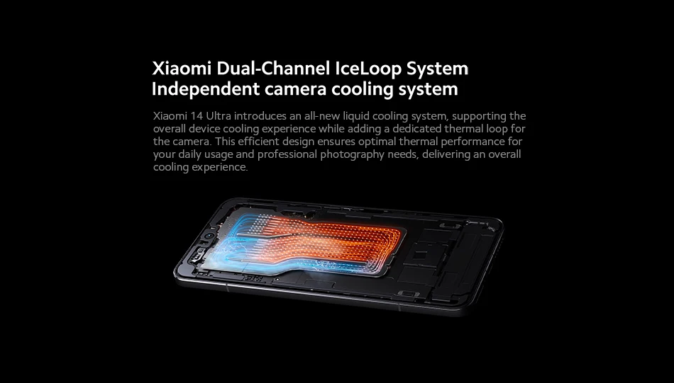 Xiaomi 14 Ultra introduces an all-new liquid cooling system, supporting the overall device cooling experience while adding a dedicated thermal loop for the camera. This efficient design ensures optimal thermal performance for your daily usage and professional photography needs, delivering an overall cooling experience.