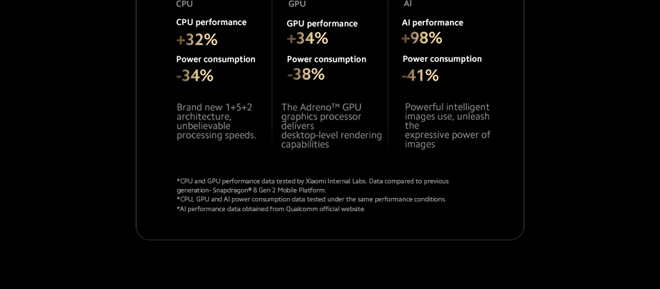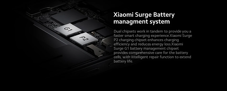 Dual chipsets work in tandem to provide you with a faster smart charging experience. Xiaomi Surge P2 charging chipset enhances charging efficiency and reduces energy loss. Xiaomi Surge G1 battery management chipset provides comprehensive care for the battery cells, with an intelligent repair function to extend battery life.