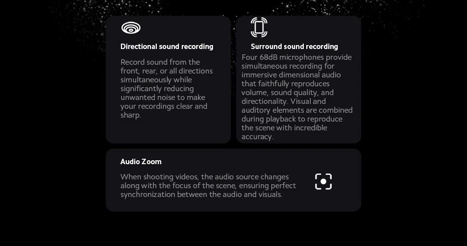 The all-new Sony’s LYT-900 sensor features a 1-inch sensor size and 3.2µm 4-in-1 Super Pixel, delivering outstanding low-light performance. Paired with the Dual Native ISO Fusion Max technology, it achieves an exceptionally high dynamic range, capturing unprecedented nuances in light and shadow details.
