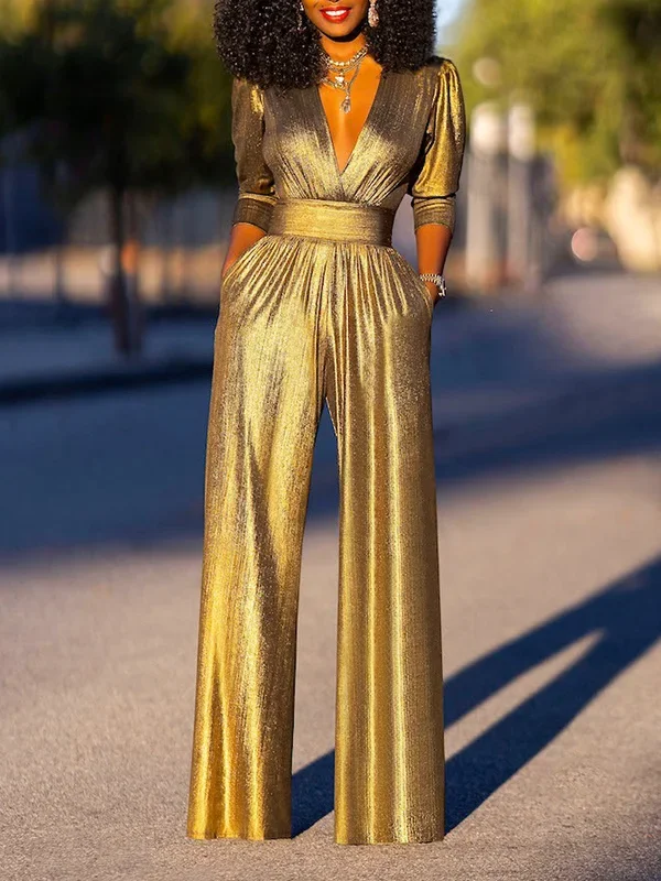 Style : Wide Leg,Three-quarter Sleeves,High Waisted,
