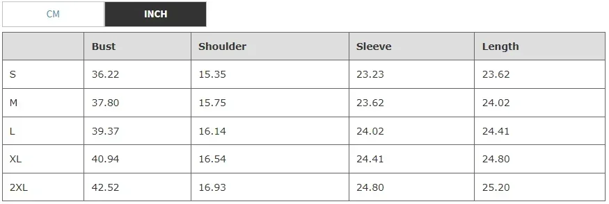 Tops Size Chart: