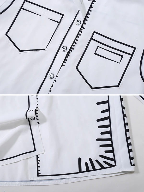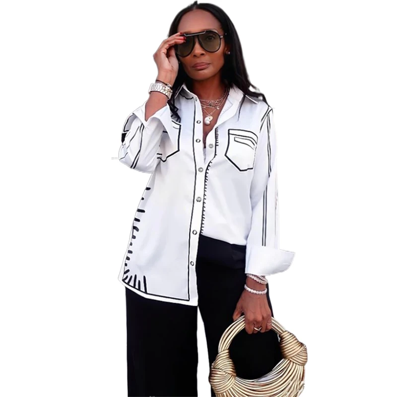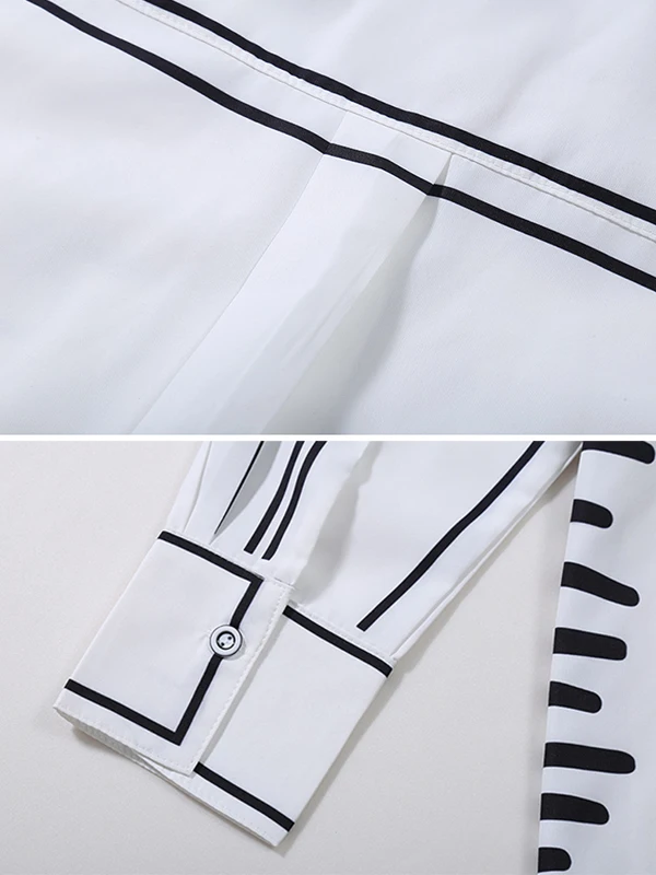 Yeezzi Female Stylish Black White Contrast Color Lapel Blouses 2024 New Spring Summer Long Sleeves Loose Urban Office Shirts