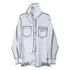 Yeezzi Female Stylish Black White Contrast Color Lapel Blouses 2024 New Spring Summer Long Sleeves Loose Urban Office Shirts