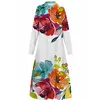 Yeezzi Women Elegant Flower Printed Lapel Shirts Dress 2024 New Autumn Long Sleeves Loose Buttoned Party Evening Maxi Dresses