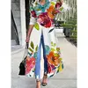 Yeezzi Women Elegant Flower Printed Lapel Shirts Dress 2024 New Autumn Long Sleeves Loose Buttoned Party Evening Maxi Dresses