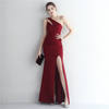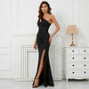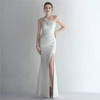 YIDINGZS أنيقة مائل الرقبة الأزرق الترتر فستان سهرة المرأة حزام حفلة ماكسي فستان حفلة موسيقية طويل 19112