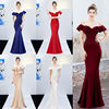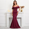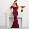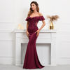 YIDINGZS الساتان الناعم انظر من خلال يزين الخرز فستان سهرة طويل أنيق قبالة الكتف حفلة ماكسي فستان حفلة موسيقية طويل