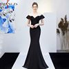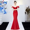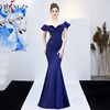 YIDINGZS الساتان الناعم انظر من خلال يزين الخرز فستان سهرة طويل أنيق قبالة الكتف حفلة ماكسي فستان حفلة موسيقية طويل