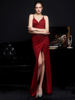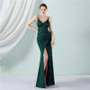 YIDINGZS لينة الحرير حمالة أنيقة فستان حفلة خضراء شق فستان سهرة المرأة عارية الذراعين فستان ماكسي فستان حفلة موسيقية طويل 18578
