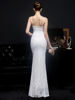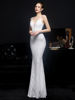 YIDINGZS نساء حزام فستان ماكسي مثير الخامس الرقبة مساء فستان أبيض الترتر فستان حفلة موسيقية طويل