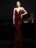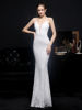 YIDINGZS نساء حزام فستان ماكسي مثير الخامس الرقبة مساء فستان أبيض الترتر فستان حفلة موسيقية طويل