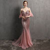 YIDINGZS 2022 الوردي قبالة الكتف فستان حفلة نساء فستان حزام مثير الترتر مساء فستان حفلة موسيقية طويل 18272