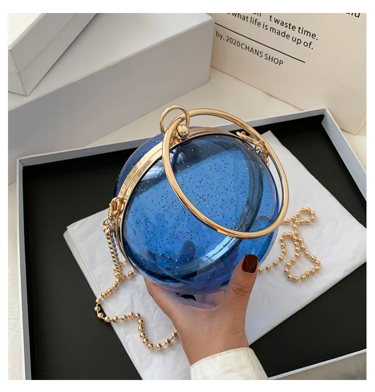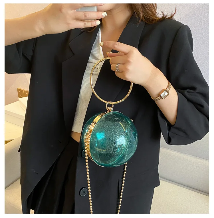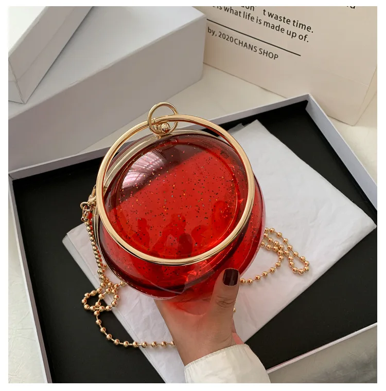 YoReAi 2022 جديد الاكريليك شفافة كروية حزمة مخلب العلامة التجارية الفاخرة المرأة رسول حقيبة مساء حقيبة يد سلسلة حقائب الكتف