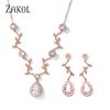 ZAKOL رائعة قطرة الماء ورقة زركونيا مجوهرات الزفاف مجموعات أقراط قلادة مجموعة فاخرة الزفاف المشاركة حفلة موسيقية الملحقات
