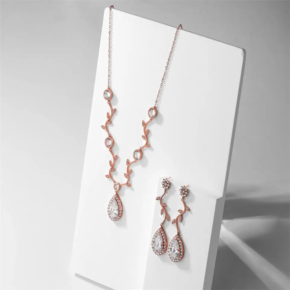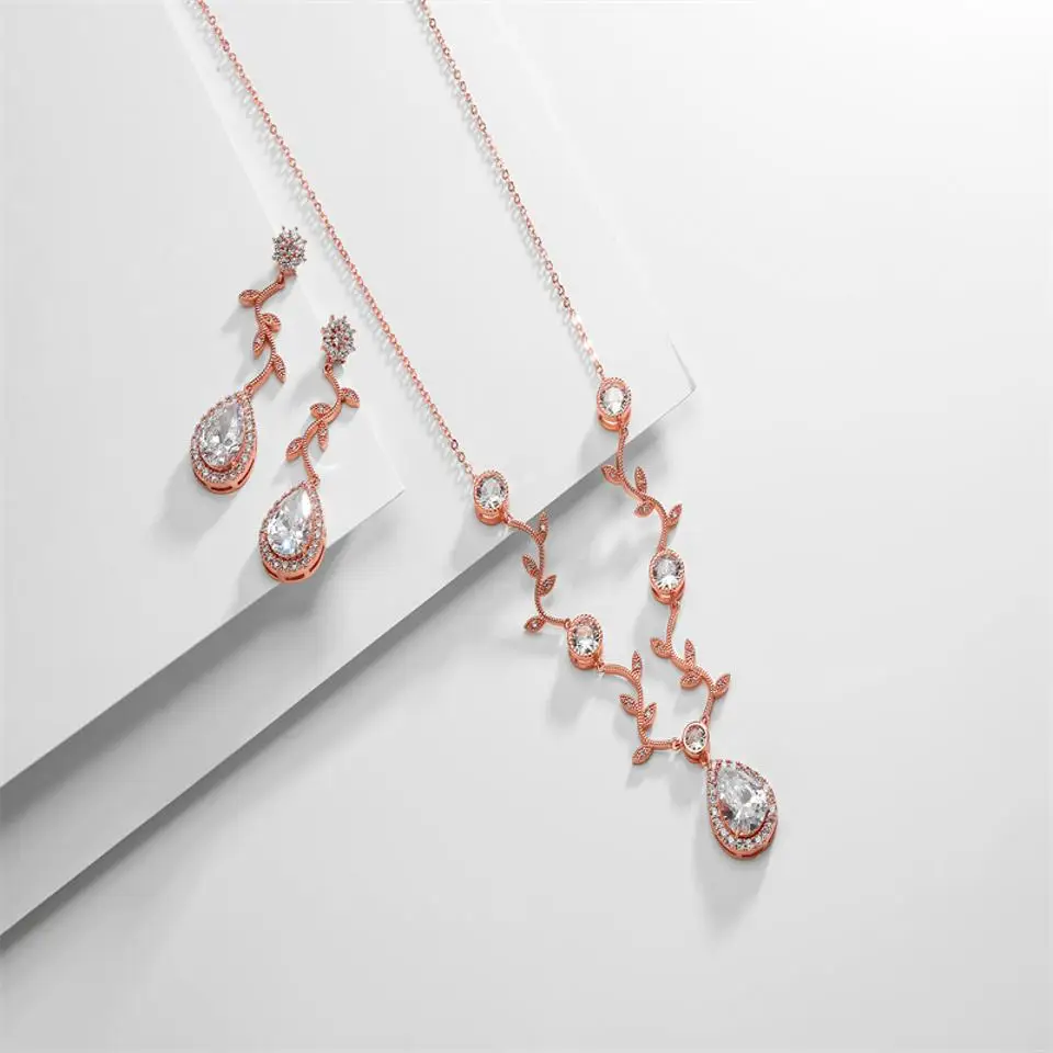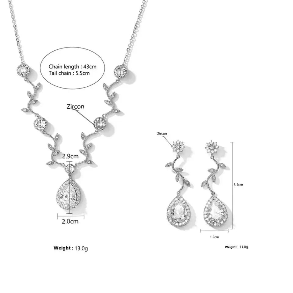 ZAKOL رائعة قطرة الماء ورقة زركونيا مجوهرات الزفاف مجموعات أقراط قلادة مجموعة فاخرة الزفاف المشاركة حفلة موسيقية الملحقات