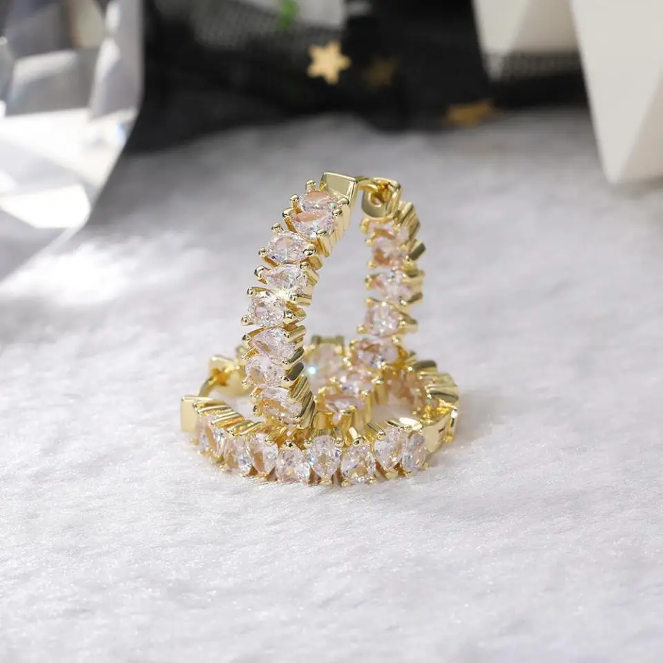 ZAKOL موضة مستطيل زركونيا هوب أقراط للنساء لامعة قطرة الماء كريستال القرط مجوهرات الزفاف الزفاف
