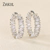 ZAKOL موضة مستطيل زركونيا هوب أقراط للنساء لامعة قطرة الماء كريستال القرط مجوهرات الزفاف الزفاف