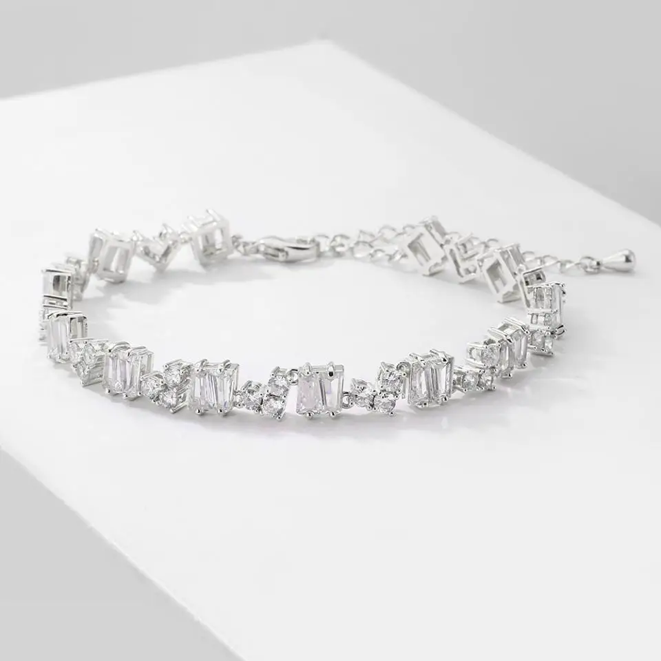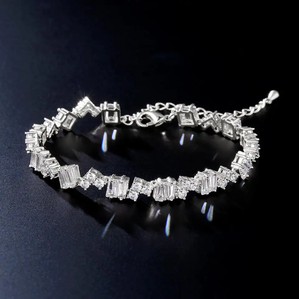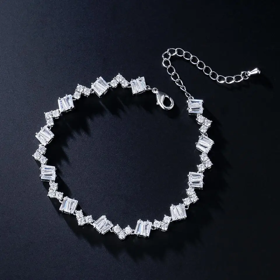 ZAKOL هندسية شبه منحرف زركونيا أساور للنساء الفاخرة كامل سوار CZ مجوهرات رائعة لحفلات الزفاف