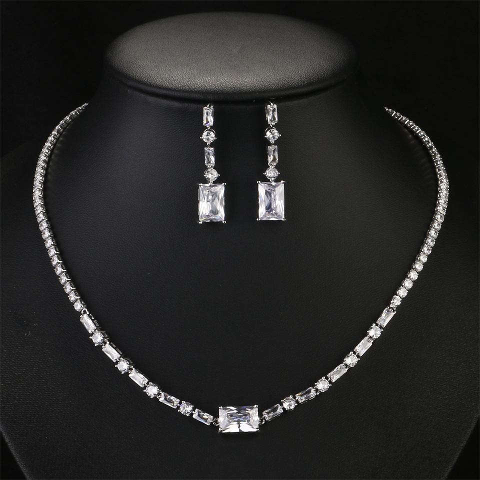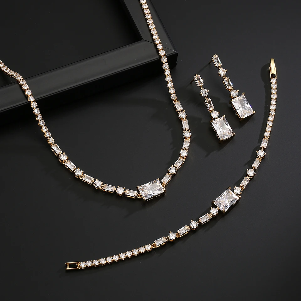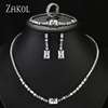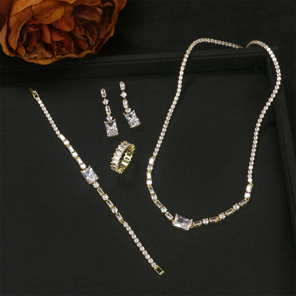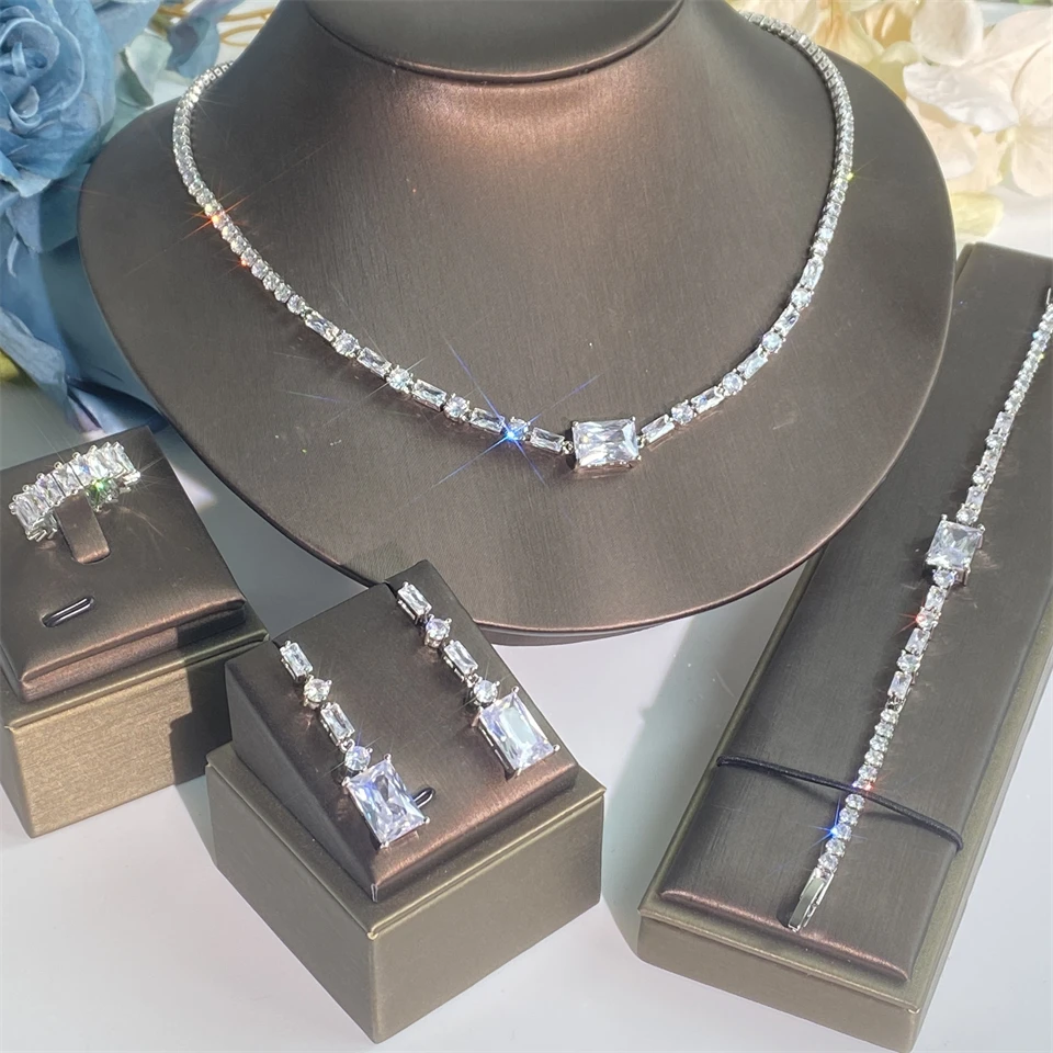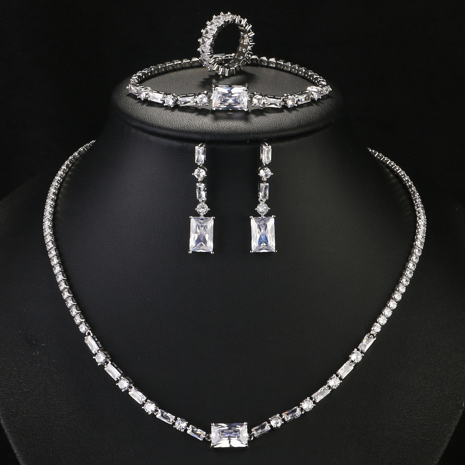 ZAKOL مجموعة مجوهرات الزفاف الفاخرة هندسية مربعة الزركون أقراط وقلادة وسوار وخاتم مجموعات للنساء عشاء الزفاف