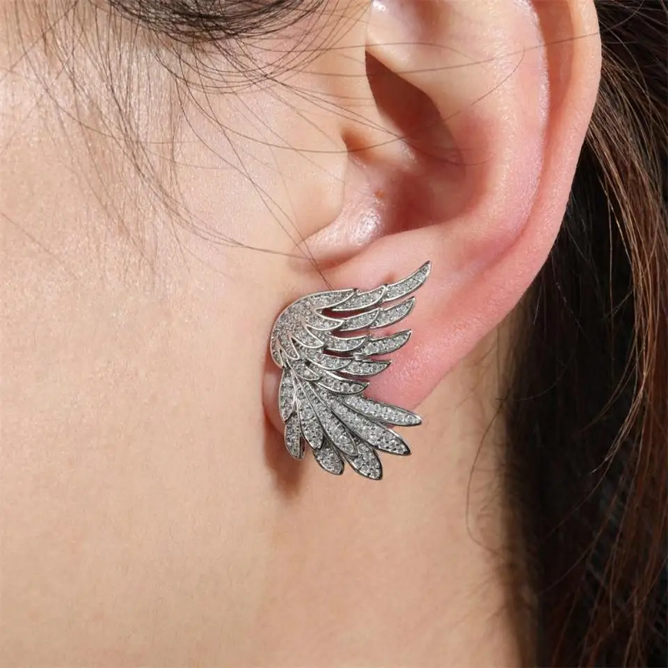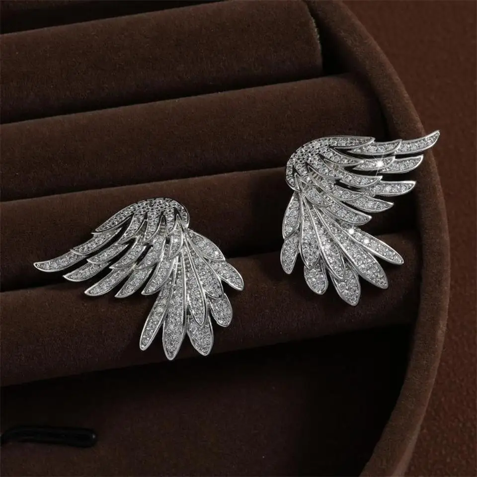 ZAKOL خمر أجنحة الملاك وأقراط للنساء رائعة ريشة على شكل الزركون القرط مجوهرات الزفاف الزفاف