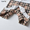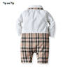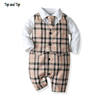 بلوزات علوية وأعلى الموضة الرضع الفتيان شهم رومبير ملابس قطعة واحدة طويلة الأكمام القطن المرقعة منقوشة ربطة القوس فيونكة الخامس الرقبة بذلة