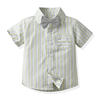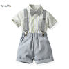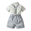 بلوزات وأعلى موضة أطفال طفل أطفال بنين مجموعة ملابس قصيرة الأكمام عادية مخطط قميص مع ربطة العنق + الحمالات السراويل وتتسابق