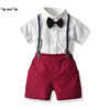 بلوزات وأعلى موضة الاطفال الفتيان شهم مجموعة ملابس الأطفال الصبي شهم قصيرة الأكمام ربطة قميص الحمالات السراويل الملابس