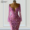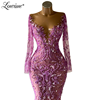 فساتين سهرة Lowime الوهم دانتيل أرجواني حورية البحر العربية بأكمام طويلة دبي مطرز فستان حفلات رسمي نسائي